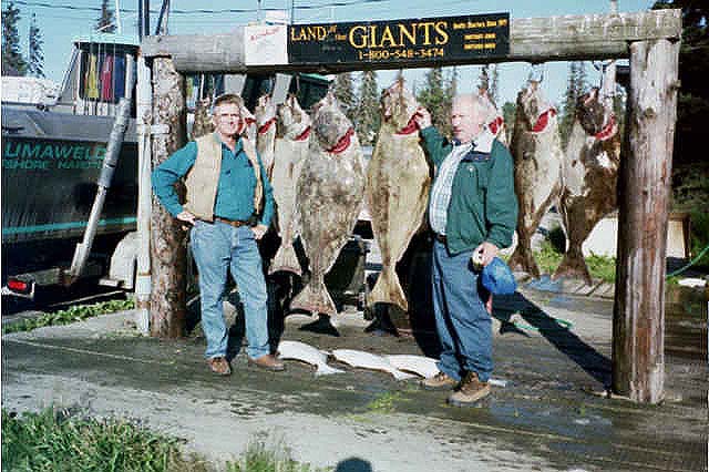 Halibut caught by David Averill in Cook Inlet, Alaska..25 to 95 pounds Early Aug 2000